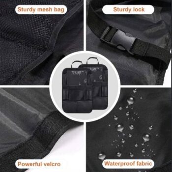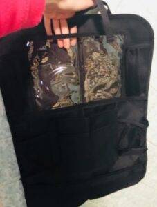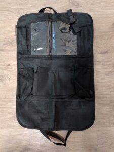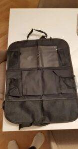 I was getting tired of having so much STUFF in my vehicle – no matter how often I try to clear it out I always need different things when I travel. Found these and was happy to be able to tidy my vehicle! These seat back organizers are perfect. I am able to neatly put books, make up, pens, tissues, snacks – just about everything that was littering the floor is now neatly stored. This also has a nice size clear compartment that would be ideal if you wanted an iPad or screen for kids to watch it to store their travel necessities.