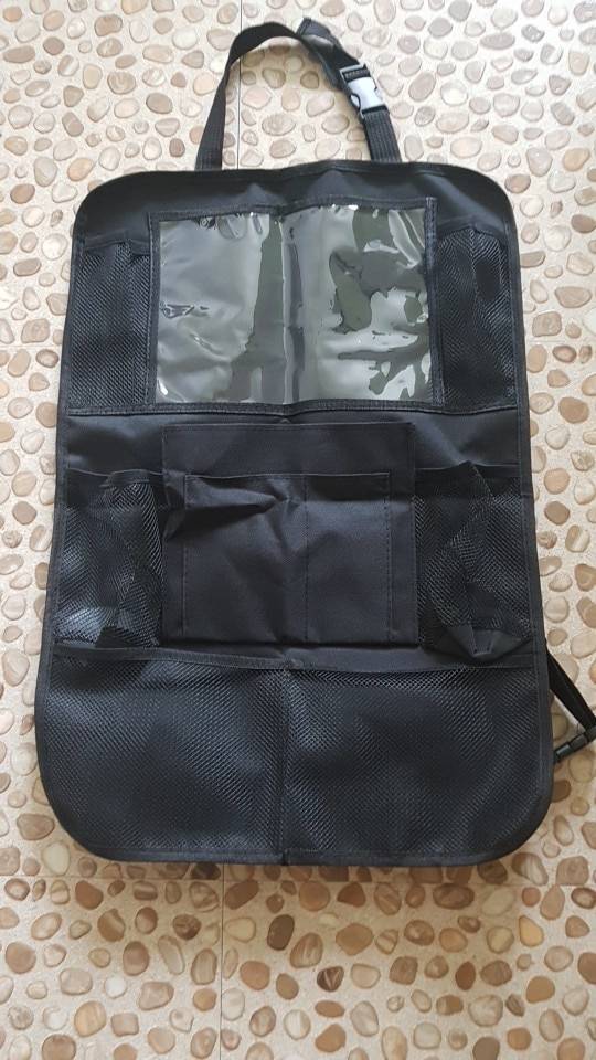Very well made organizer, I liked it held all my daughter’s car toys and the pocket for the tablet is touch compatible which is nice. My daughter can work the tablet without needing to take it out each time. It fits bottles nicely and her headphones too. She likes the new organizers and I love finally having the toys in one place! Easy to clip on and very adjustable straps to accommodate different girths of seats.