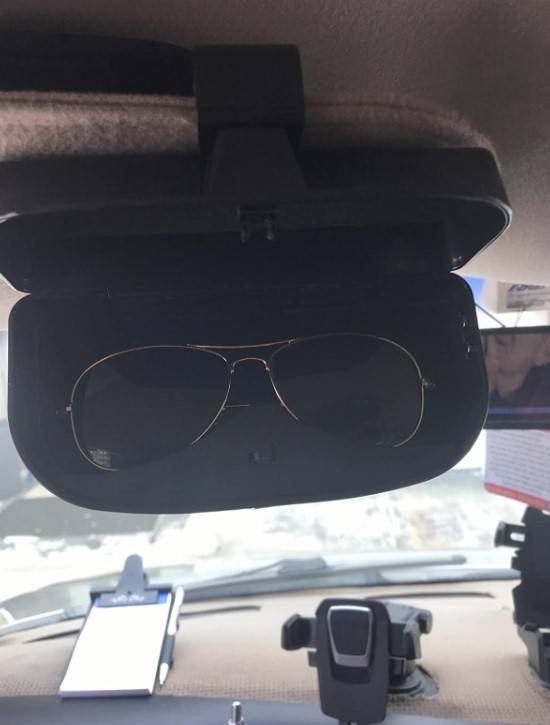 Best place for my sunglasses in the car. Easy to reach yet out of the way.