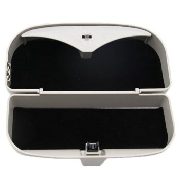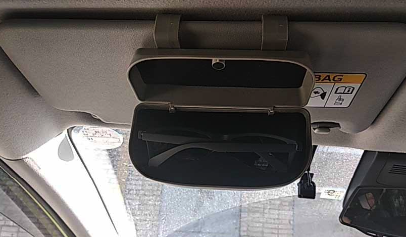 My wife’s Kia has only one glasses “cubby” storage area and my Dodge Ram truck has none, and I wanted a place to store my glasses and sunglasses. I was concerned about the size of this case and how we might bump our heads on it if it was attached to our sun-visors. Then I realized I could slide the clip in between the upholstery and frame of our skylights and “voilla” the perfect place.