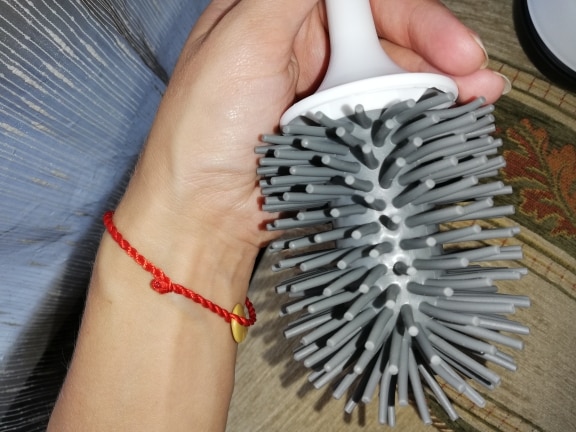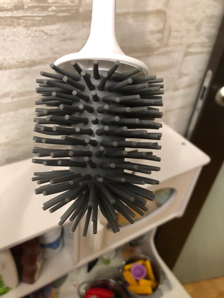 I have always used usual brushes before, water is constantly dripping from them onto the floor, onto the toilet and near the brush. I decided to try a silicone toilet brush and the result surprised me. water does not linger on it, does not spray, is dry and clean around. I advise.