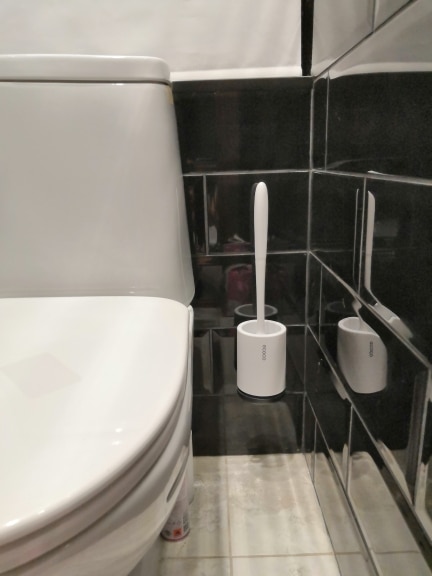 I was a bit sceptic when i was buying this silicone toilet brush! But I said why not give it a try? Cause i have a lots of silicone stuff like soup spoon and baking trays and i like them! So when it arrived and I’ve tried it my previous one went straight away to the bin! It’s so easy to clean, all you need is water. Done! The handle is made from 2 pieces so you can buy a spare bristle and change it when you need! But I don’t think you’ll need one in the next 10 years :)) And excuse my language but the p*o doesn’t stick to the brush!!! And cause the holder is having a clever construction the brush is always dry! Super! Is a space-saver one and it will look nice in any bathroom!!!