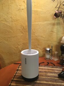 Our brush in total measures 16” x 3.5” (410mm x 90mm), meaning it doesn’t take up a lot of space. No bulky square holders like with traditional, ordinary toilet brushes.