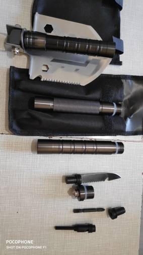 Great camping/compact shovel. Very sturdy. The accessories are good and the shovel itself is great. I Would have given it 5 stars. I am impressed with the shovel, overly thrilled with the other accessories (knife, fire striker, screwdriver)