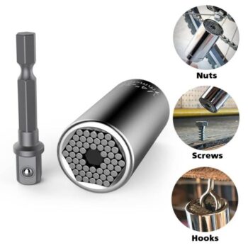 This tool can be attached to my screwdriver with multiple bits. It makes skate truck lock nut adjustments easy, and can also tighten the wheels. It is light enough to haul around and attached to my screwdriver I can do just the right torque. I was shopping for a socket wrench set, but this obviates that purchase for me. It sure does grab!